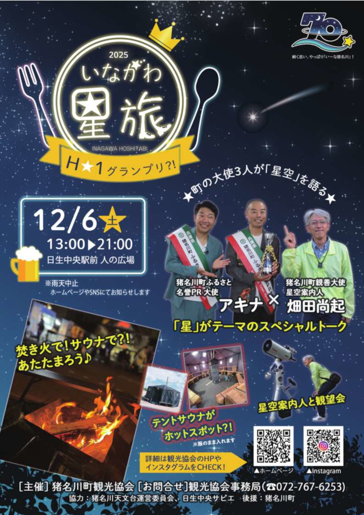 猪名川町観光協会により今年も『いながわ星旅』が開催されます。